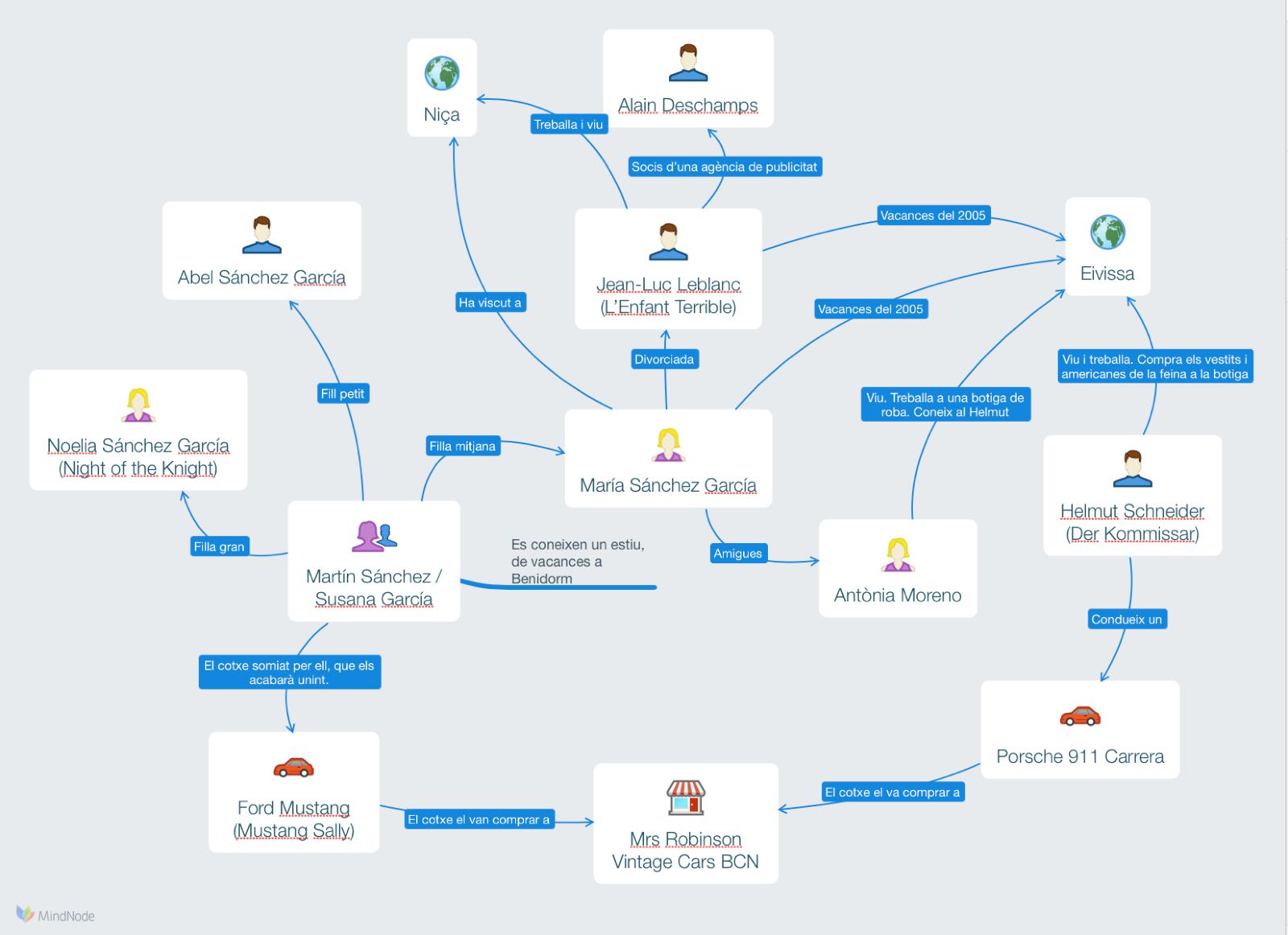 En aquest punt em vaig adonar que havia arribat el moment de fer un salt endavant. A partir del moment que vaig començar a plantejar la cinquena història (Mustang Sally), vaig construir tota una família de la que la història giraria a l’entorn d’un cotxe, però mirant de no convertir-lo en un protagonista directe. Aquí els protagonistes eren només les persones, el cotxe era una mena de fet circumstancial, una excusa per escriure.
